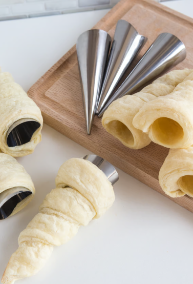 Want an easy way to create impressive desserts and appetizers for your guests? This set of six Cream Horn Molds is just what you need for your next party or special occasion. Constructed of sturdy, sleek tin-plated steel, these metal cones provide the necessary shape of the popular delicate, flaky pastries. To use, simply wrap the cream horn forms with homemade or store-bought puff pastry, bake, then fill with your favorite custard, fruits or other filling! Sweet or savory, the opportunities are endless. Experience the fun, simple way of creating beautiful, eye-catching treats and desserts.