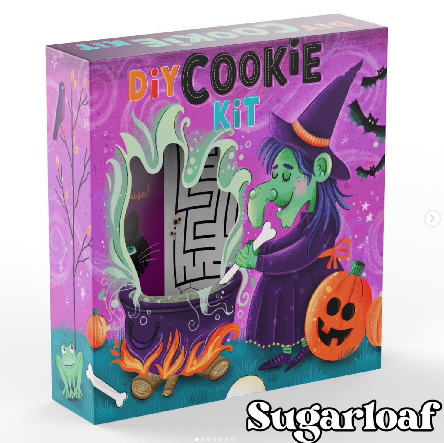 The Halloween DIY Cookie Kit Box is a 9x9x2.5 pie shaped box so you can fit a generous amount of cookies (up to 12 or more depending on size), sprinkles and icing bags.
