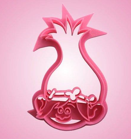 Our Female Troll cookie cutters are 4 inches tall, 2-1/2 inches wide, and are made of pink plastic. These detailed cookie cutters have a recessed stamp for detailing the inside of the cookies. Cleaning instructions: hand wash, towel dry. Buy your female troll doll cookie cutter today!
