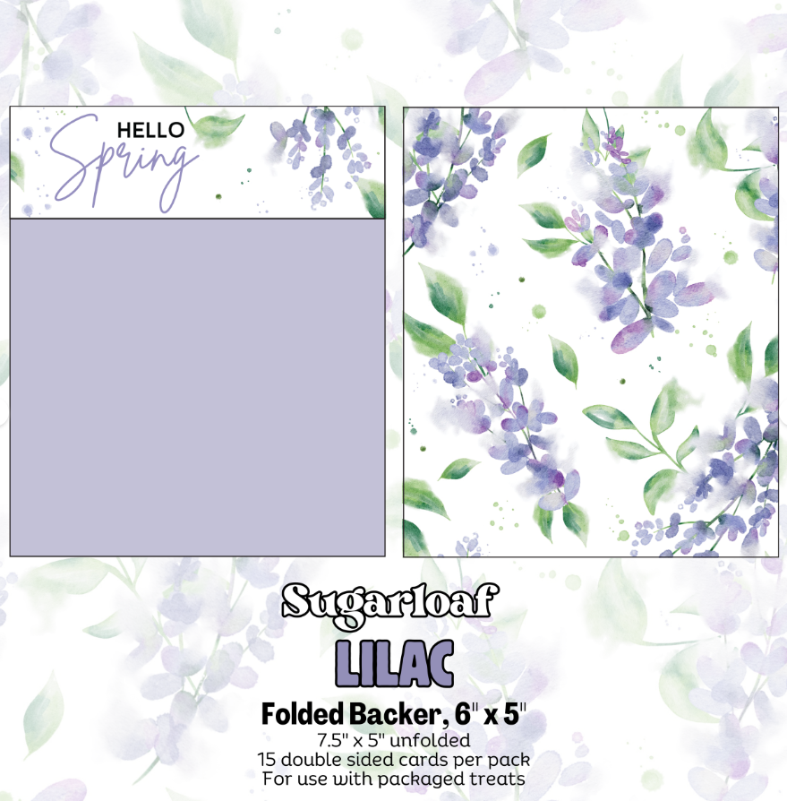 6" x 5" Folded Backer in "Lilac" Pattern with matching "lilac color".