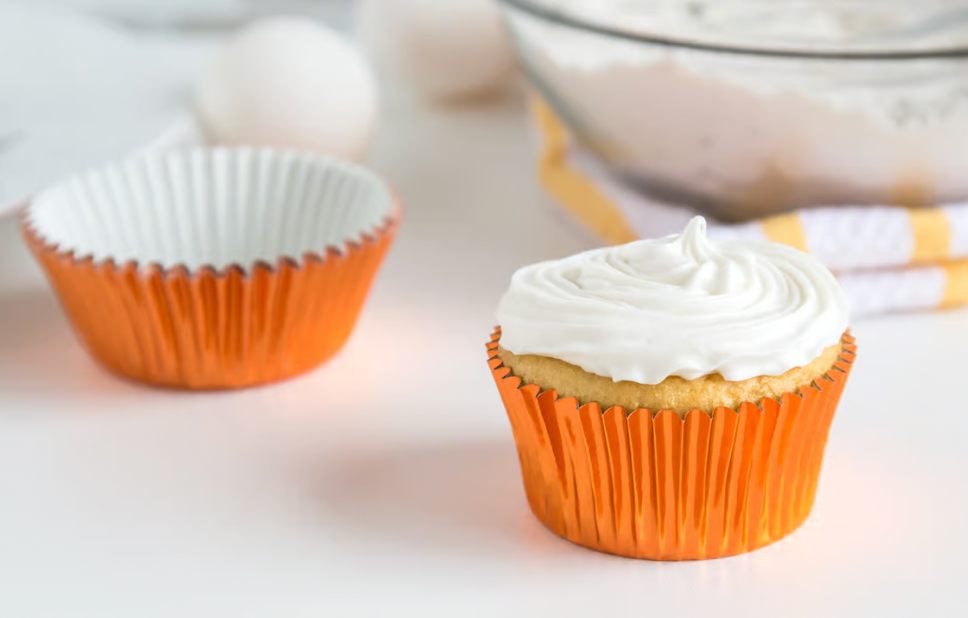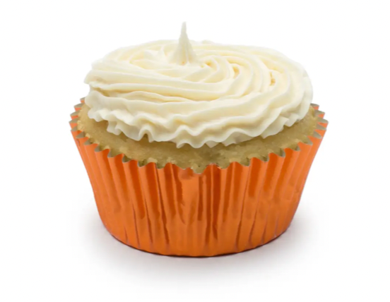 Add some elegance to your favorite batch of cupcakes or muffins with these orange foil bake cups. These food-safe, fluted baking cups are standard size and grease-resistant, so their outsides remain shiny, bright and beautiful. This set includes 32 bake cups that are perfect for the holidays or any special occasion. Simply place in a muffin tin and fill with your favorite batter to dress up your cupcakes, or use them to hold candies and other treats.