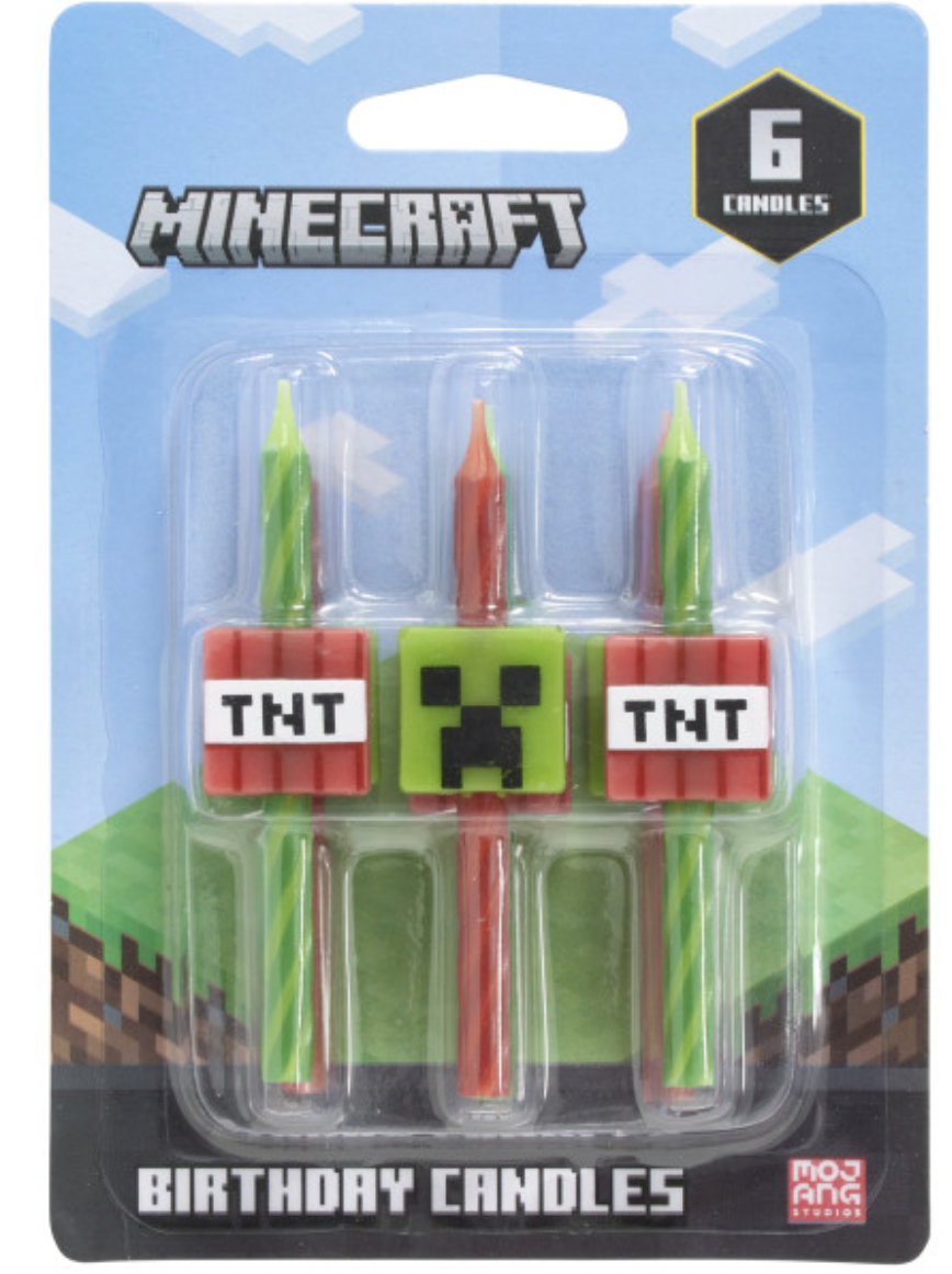 Illuminate your MINECRAFT birthday cakes or cupcakes with these MINECRAFT icon candles! 6 packages of candles per box.