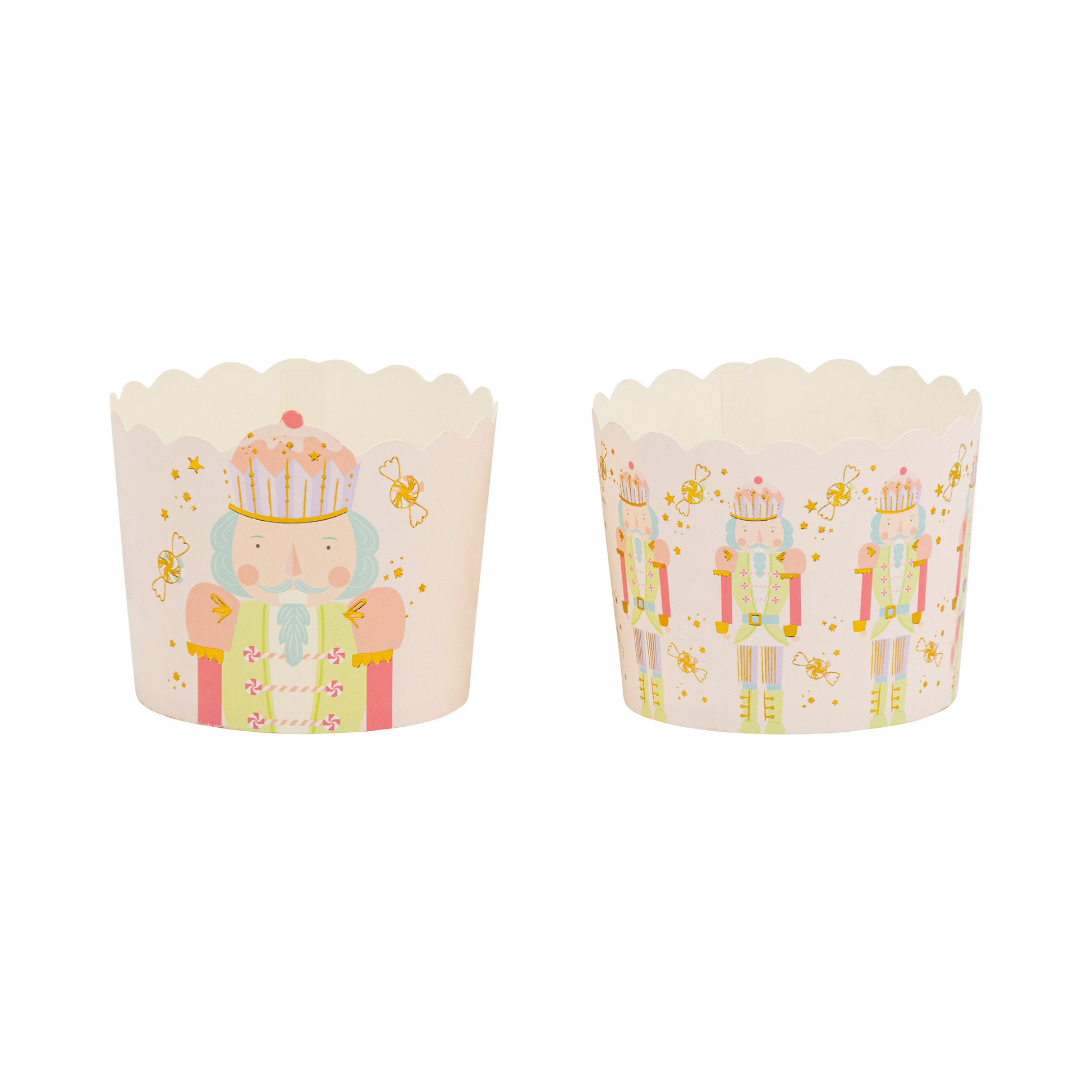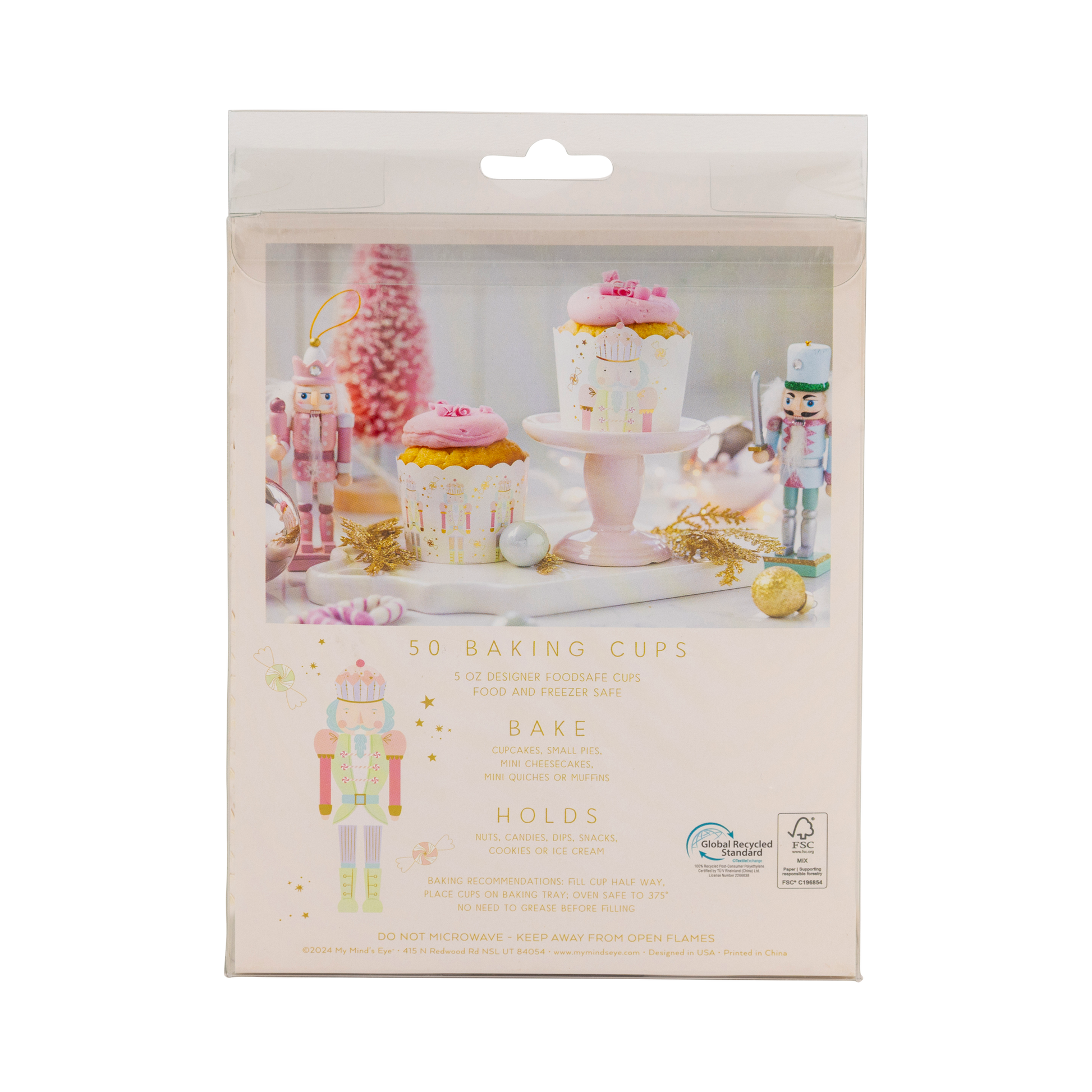 Get your holiday baking on with these nutcracker-shaped baking cups! The gold foil adds a touch of elegance to your Christmas treats. Go nuts with your creativity while making delicious treats! • 50 baking cups in each box set • 25 of 2 coordinating designs. • cups are 5 oz • gold foil