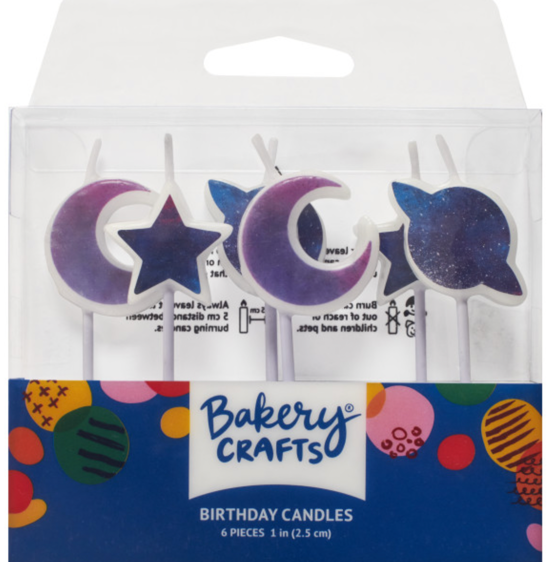 These Cosmic Sky shaped candles will be a hit with anyone from kids to adults! Each candle is approximately 1" tall (without wick or stick). 6 packages of candles per box.