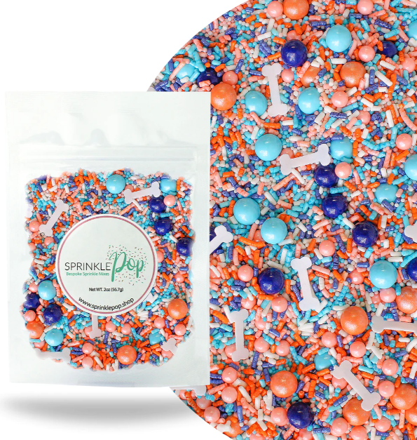 Oh Biscuits! Sprinkle Mix is a delightful assortment of cake decorating and edible decor. Designed specifically for bakers, this sprinkle mix features a vibrant blend of blue and orange colors, along with specialty wafer paper dog bones. Perfect for adding a touch of whimsy to your cakes, cookies, ice cream, and cupcakes, this mix offers a variety of shapes and colors to make your creations truly pop.