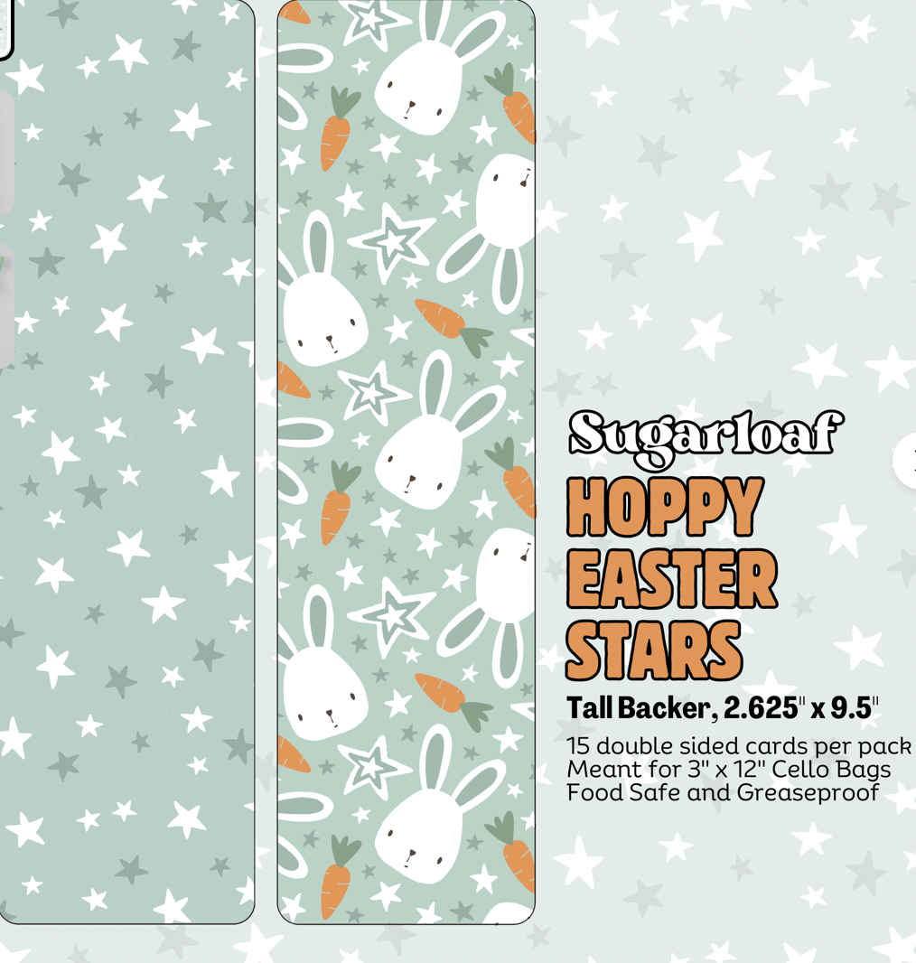 9.5" x 2.625" Tall Backer in "Bunnies and Carrots" Pattern with matching "Stars pattern" on the opposite side.