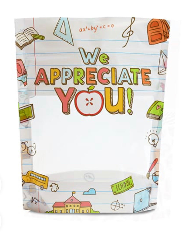 Teacher Appreciation Cookie Pouches – 6.5″ x 8″ x 2.5″ Cookie Packaging Stand Up Pouch