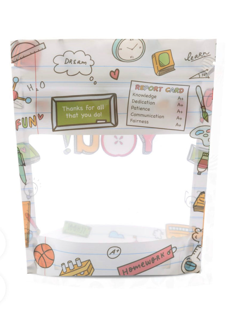 These cookie pouches will be perfect for packaging Teacher Appreciation gifts, End of School Year gifts and Beginning of the School Year gifts! Your customers can gift these resealable pouches to Teachers, Bus Drivers, Admins, or any one who works with the school system so they can enjoy some cookies now and save some for later too! Try using these pouches to package: