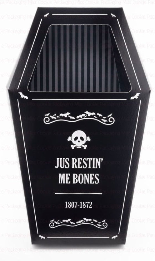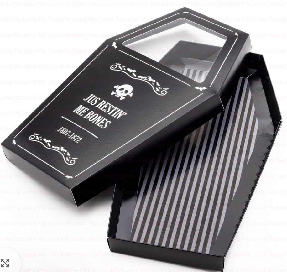 Use our custom designed Coffin Box to package the most adorable skeleton cookie set this Halloween!