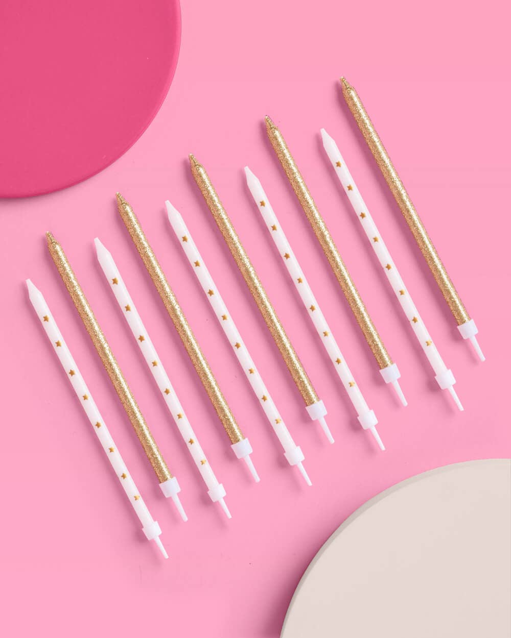 Wish Upon A Star Candles - 10 gold glitter candles, birthday